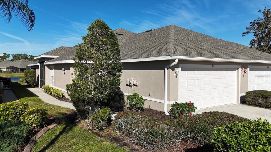 *3D INTERACTIVE VIRTUAL TOUR* Welcome to the Villas of Sabal Trace, one of the most desirable maintenance-free, gated, and pet-friendly communities. *TURN-KEY FURNISHED* This picturesque lakefront villa offering a relaxed and convenient lifestyle has 2 spacious bedrooms, 2 bathrooms, and a versatile BONUS room (w/closet) that can easily be transformed into a true 3rd bedroom, den, or office—perfect for whatever suits your needs. 2023 ROOF, A/C & Water Heater! Pull into the driveway and be met with lush, tropical landscaping from front to back including green grass, palm trees, curbing and the scent of flowers in bloom as you make your way down the walkway to be welcomed into your screened in front entryway. Open the front door to be greeted with an open and spacious Great Room that boasts high, vaulted ceilings, recessed lights, wood laminate floors, plant shelves, wood blinds and sliding glass doors to your backyard oasis. The open-concept design creates a bright, welcoming atmosphere, enhanced by cathedral ceilings and neutral tones throughout. The kitchen and dining area combo is the perfect spot for entertaining family and friends. The gourmet kitchen houses a breakfast bar, closet pantry, plant shelves, solid wood cabinets with decorative molding, Stainless Steel appliances (brand NEW fridge) and a built-in, in-lay, a nice spot for a hutch or coffee bar. The owner's suite is a true retreat, featuring direct access to the private EXTENDED PAVER LANAI, built-in closets (one walk-in) and an en-suite master bath complete with dual sinks and a walk-in-shower, combining both style and functionality. The split floor plan ensures the ultimate privacy for both you and your guests. The guest bedroom is filled with natural sunlight, ceiling fan, private closet and carpet. The well-appointed guest bath is right outside the bedroom, and includes a vanity, mirror, shower/tub combo and toilet. Convenience is key with a well-designed interior laundry room that comes with extra storage space, plus washer and dryer. Love the outdoors? There is not 1 but 2 outdoor areas this villa offers! Eat out in your enclosed Florida room that has screens plus vinyl inserts that serve as extra room...or unwind with a drink while catching the gorgeous sunset, grill or entertain in the oversized screened in lanai w/gorgeous LAKE VIEW that will make you feel like you’re on vacation everyday! The Villas of Sabal Trace is a gated, pet-friendly community with no age restrictions, offering a safe and peaceful environment to call home. The community amenities are outstanding, with a heated pool, a clubhouse, a fitness room, and a variety of social activities to enjoy. With low HOA fees and no CDD fees, you can truly have it all—an exceptional home in an exceptional location. Conveniently located in the heart of North Port, this villa is close to everything you could need. You’ll find shopping, dining, golfing, and medical facilities just minutes away, as well as a dog park, aquatic park, and the vibrant Downtown Wellen Park. The area also offers easy access to our beautiful Gulf Coast Beaches, making it the ideal location for those seeking both convenience and a relaxed, coastal lifestyle. This villa home is the perfect place to entertain and create lasting memories, don’t miss the opportunity to make it yours! Put this on your MUST SEE list and make an appointment today!!