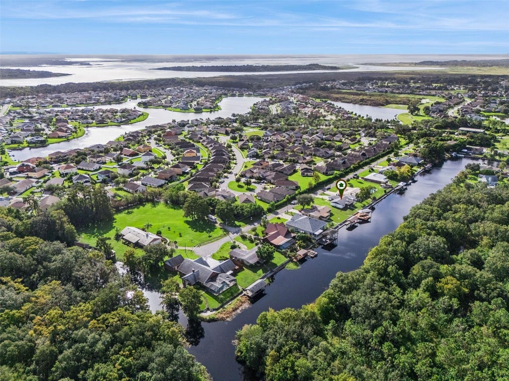 The formal dining area features a vaulted ceiling and tranquil canal views—an inviting space for family meals or gatherings. The primary suite serves as a peaceful retreat, offering water views, luxury vinyl plank flooring, a walk-in closet, and a private en-suite bath.